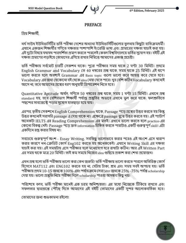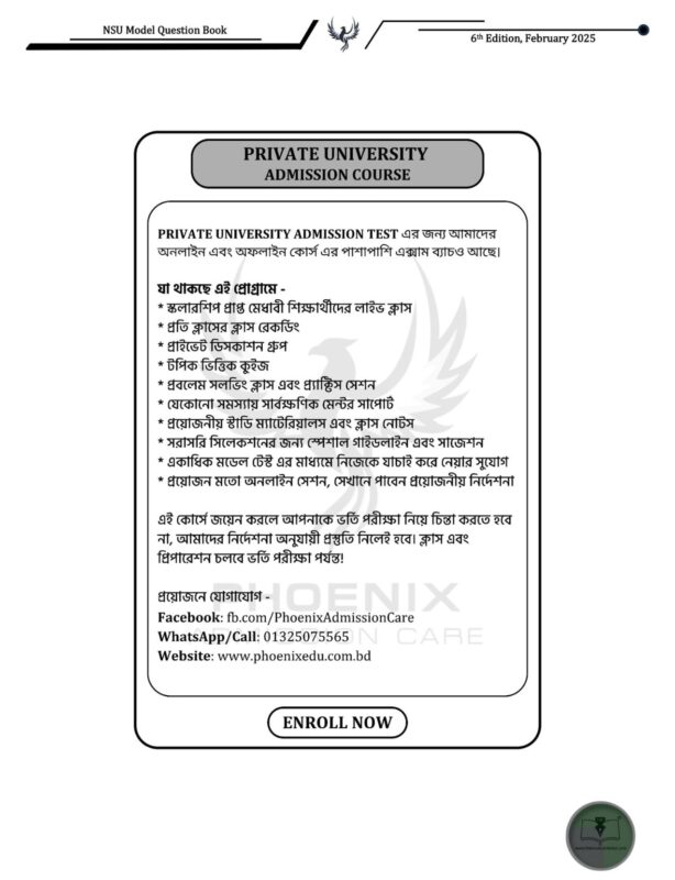 North South University Admission Test เฆเฆฐ เฆเฆจเงเฆฏ เฆธเฆฐเงเฆฌเงเฆเงเฆ Preparation เฆจเฆฟเฆคเง เฆธเฆนเฆพเงเฆคเฆพ เฆเฆฐเฆคเง เฆเฆฒเง เฆเฆธเงเฆเง Phoenix NSU Model Question Book เฆเฆฐ 6th Edition. เฆเฆ เฆฌเฆเงเง เฆเฆฎเฆฐเฆพ North South University (NSU) เฆธเฆฐเงเฆฌเฆถเงเฆท เฆญเฆฐเงเฆคเฆฟ เฆชเฆฐเงเฆเงเฆทเฆพเง เฆเฆธเฆพ เฆชเงเฆฐเฆถเงเฆจเงเฆฐ เฆชเงเฆฏเฆพเฆเฆพเฆฐเงเฆจ เฆ Difficulty Level เฆ เฆจเงเฆฏเฆพเงเง เฆชเงเฆฐเง เฆฌเฆเฆเฆฟเฆเง เฆจเฆคเงเฆจ เฆญเฆพเฆฌเง เฆธเฆพเฆเฆฟเงเงเฆเฆฟ, เฆฏเงเฆจ NSU Admission Test เฆ เฆชเฆเฆจเงเฆฆเงเฆฐ เฆกเฆฟเฆชเฆพเฆฐเงเฆเฆฎเงเฆจเงเฆเง Scholarship เฆธเฆน เฆเฆพเฆจเงเฆธ เฆชเงเฆคเง เฆคเงเฆฎเฆพเฆฐ เฆชเงเฆฐเฆธเงเฆคเงเฆคเฆฟเฆฐ เฆเฆจเงเฆฏ เฆธเฆฐเงเฆฌเงเฆเงเฆ เฆธเฆนเฆพเงเฆ เฆนเงเง เฆเฆ เง เฆเฆ Phoenix NSU Model Question Book. เฆเง เฆเฆเง เฆเฆ North South University Model Question Book เฆ? เฆเฆ เฆฌเฆเฆเฆฟเฆคเง North South University Admission Test Standard เฆเฆฐเง 20 เฆเฆฟ Model Test Question เฆเฆฌเฆ เฆคเฆพเฆฆเงเฆฐ เฆฌเงเฆฏเฆพเฆเงเฆฏเฆพ เฆธเฆน Solution เฆฏเงเฆเงเฆค เฆเฆฐเฆพ เฆนเงเงเฆเง, เฆฏเฆพ Practice เฆเฆฐเฆพเฆฐ เฆฎเฆพเฆงเงเฆฏเฆฎเง เฆคเงเฆฎเฆฟ เฆคเงเฆฎเฆพเฆฐ Preparation เฆเง เฆเฆเฆฟเงเง เฆจเฆฟเฆคเง เฆชเฆพเฆฐเฆฌเง เฆฌเฆนเงเฆเงเฆฃเฅค เฆเฆ เฆฌเฆเฆคเง Model Test เฆเงเฆฒเง North South University เฆญเฆฐเงเฆคเฆฟ เฆชเฆฐเงเฆเงเฆทเฆพเฆฐ เฆ เฆจเงเฆฐเงเฆช Section Wise เฆธเฆพเฆเฆพเฆจเง, เฆฏเฆพเฆฐ เฆฎเฆพเฆงเงเฆฏเฆฎเง English Grammar, Reading Comprehension, General Math, Essay Practice, เฆเฆฌเฆ เฆเฆฐเงเฆเฆฟเฆเงเฆเฆเฆพเฆฐเงเฆฐ เฆชเงเฆฐเฆถเงเฆจเงเฆฐ เฆชเงเฆฏเฆพเฆเฆพเฆฐเงเฆจ เฆฌเงเฆเง เฆชเงเฆฐเงเฆฏเฆพเฆเฆเฆฟเฆธเงเฆฐ เฆธเงเฆฏเงเฆ เฆฐเงเงเฆเงเฅค เฆฌเฆเฆเฆฟเฆคเง เฆธเฆฌเฆเงเฆฒเง Model Test เฆเฆฐ Solution-เฆ เฆชเงเฆฐเฆคเฆฟเฆเฆฟ เฆชเงเฆฐเฆถเงเฆจเงเฆฐ เฆฏเฆฅเฆพเฆฏเฆฅ เฆฌเงเฆฏเฆพเฆเงเฆฏเฆพ เฆ เฆธเฆฎเฆพเฆงเฆพเฆจ เฆฏเงเฆเงเฆค เฆเฆฐเฆพ เฆนเงเงเฆเง, เฆฏเงเฆจ เฆฏเงเฆเงเฆจเง Private University Admission Test เฆเฆฐ เฆชเงเฆฐเฆฟเฆชเฆพเฆฐเงเฆถเฆจเงเฆฐ เฆเฆจเงเฆฏ practice เฆเฆฐ เฆธเฆฎเง เฆเงเฆจเง เฆชเงเฆฐเฆถเงเฆจ เฆฌเงเฆเฆคเง เฆฌเฆพ เฆธเฆฎเฆพเฆงเฆพเฆจ เฆเฆฐเฆคเง เฆธเฆฎเฆธเงเฆฏเฆพ เฆนเฆฒเง เฆเฆ เฆฌเฆ เฆฅเงเฆเง เฆธเฆ เฆฟเฆ เฆธเฆฎเฆพเฆงเฆพเฆจ เฆฆเงเฆเง เฆจเฆฟเฆคเง เฆชเฆพเฆฐเงเฅค เฆเฆฐ เฆคเฆพเฆฐเฆชเฆฐเฆ เฆฏเฆฆเฆฟ เฆเงเฆจเง เฆถเฆฟเฆเงเฆทเฆพเฆฐเงเฆฅเง เฆเฆฐเง เฆฌเงเฆถเฆฟ เฆธเฆพเฆชเงเฆฐเงเฆ เฆ NSU Admission Help เฆเฆฐ เฆชเงเฆฐเงเงเฆเฆจ เฆฌเงเฆง เฆเฆฐเง, เฆคเฆพเฆนเฆฒเง เฆคเฆพเฆฐเฆพ เฆฏเงเฆเงเฆค เฆนเฆคเง เฆชเฆพเฆฐเฆฌเง เฆเฆฎเฆพเฆฆเงเฆฐ เฆจเฆฐเงเฆฅ เฆธเฆพเฆเฆฅ เฆเฆเฆจเฆฟเฆญเฆพเฆฐเงเฆธเฆฟเฆเฆฟ เฆเฆกเฆฎเฆฟเฆถเฆจ เฆเฆพเฆเฆกเฆฒเฆพเฆเฆจ เฆชเงเฆฐเงเฆเงเฆฐเฆพเฆฎเ