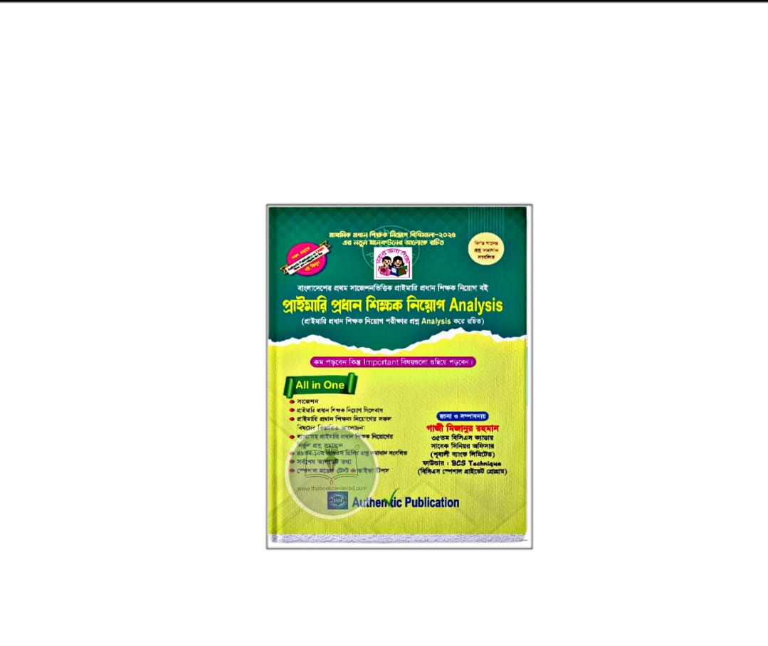 প্রাইমারি প্রধান শিক্ষক নিয়োগ এনালাইসিস by গাজী মিজানুর রহমান, বইটিতে ২০০১ থেকে সর্বশেষ ২০১২ সাল পর্যন্ত অনুষ্ঠিত প্রাইমারি প্রধান শিক্ষক নিয়োগ পরীক্ষার ব্যাখ্যাসহ নির্ভুল প্রশ্ন সমাধান যুক্ত করা হয়েছে।এছাড়াও রয়েছে ৪৯তম-১০ম বিসিএস প্রিলির প্রশ্ন সমাধান। শুধু তা-ই নয়, ২০২৫ সালে অনুষ্ঠিত PSC নন-ক্যাডার পরীক্ষার ৫টি প্রশ্ন সমাধান যুক্ত করা হয়েছে PSC-এর সম্প্রতি পরীক্ষার ট্রেন্ড ও প্রশ্ন প্যাটার্ন বোঝার জন্য। PSC এর নতুন প্রশ্নের প্যাটার্ন, ট্রেন্ড ও ৯০ নম্বরের মানবণ্টন অনুযায়ী স্পেশাল মডেল টেস্ট গুরুত্বপূর্ণ সাম্প্রতিক সাধারণ জ্ঞান: বাংলাদেশ ও আন্তর্জাতিক বিষয়াবলি। “প্রাইমারি প্রধান শিক্ষক নিয়োগ এনালাইসিস” বইটিতে রয়েছে ‘প্রাইমারি প্রধান শিক্ষক নিয়োগ পরীক্ষার সাজেশন’, যা আপনাকে ‘কী পড়বেন আর কী বাদ দিবেন’ -এই দুশ্চিন্তা থেকে মুক্তি দিবে।।