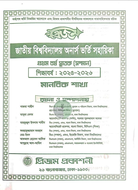 প্রিজম জাতীয় বিশ্ববিদ্যালয় ভর্তি সহায়িকা (মানবিক শাখা) ২০২৫- ২০২৬