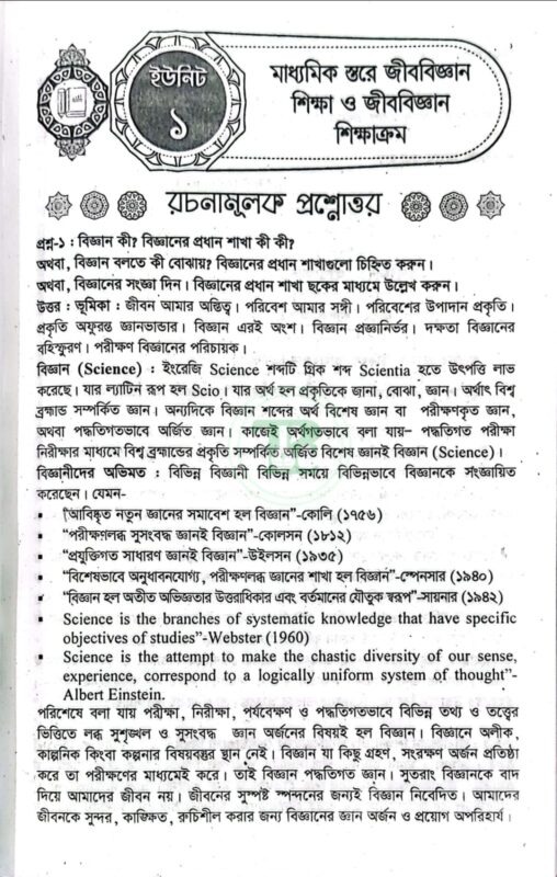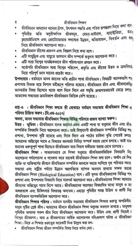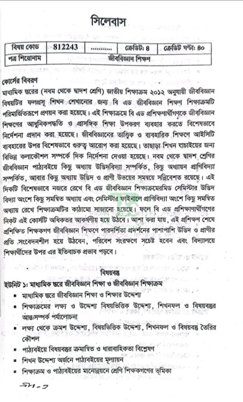 প্রভাতী বিএড জীববিজ্ঞান শিক্ষণ (বিষয় কোড: ৮১২২৪৩)