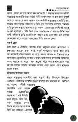 রাগ করবেন না, হাত বাড়ালেই জান্নাত—ড. মুহাম্মদ ইবনে আবদুর রহমান আরিফীর লেখা একটি ইসলামি বিবিধ গ্রন্থ, আমরা সবাই জানি, মানুষ নানা কিসিমের হয়ে থাকে। কেউ ধনী, কেউ দরিদ্র। কেউ ধৈর্যশীল, কেউ রাগী। কেউ দানশীল, কেউ কৃপণ ইত্যাদি। মানুষের এই শ্রেণিভেদকে সামনে রেখে তাদের সাথে আমাদের আচরণ করা উচিত। এই বিষয়টি নববী যিন্দেগীর কিছু ঘটনাতে আমরা প্রত্যক্ষ করবাে। আনাস রা. থেকে জানা যায় যে, রাসুল সাল্লাল্লাহু আলাইহি ওয়া সাল্লাম কখনাে তাকে ‘উফ” শব্দটুকুও বলেন নি। আয়েশা রা.-এর হাদীস থেকে আমরা জানতে পারি যে, রাসুল সাল্লাল্লাহু আলাইহি ওয়া সাল্লাম একবার এসে বললেন, তােমাদের কাছে কি খাবার আছে? তারা বললেন, না। তখন তিনি রাগ করলেন না। এমন কোন কথাও বললেন না যে, কেন তােমরা নাস্তা তৈরি করলে না? অথচ তােমরা জান আমি ক্ষুধার্ত। মসজিদ থেকে আগমন করবাে। তিনি শুধু বলেছিলেন, ঠিক আছে। আমি তাহলে সিয়াম পালন করলাম। আরেকবার তিনি এসে বললেন, তােমাদের কাছে খাবার আছে? তারা বললাে, জী আছে। তিনি বললেন, তাহলে নিয়ে আসাে। তারপর বললেন, তােমাদের কাছে তরকারী আছে? তারা বললাে, আমাদের কাছে শুধু সিরকা আছে। তিনি বললেন, নিয়ে এসাে। তারপর সেটা দিয়েই তিনি ভােজন-পর্ব সম্পাদন করেন। প্রিয় নবী সাল্লাল্লাহু আলাইহি ওয়া সাল্লাম সর্ব ক্ষেত্রে বিবেক দিয়ে কাজ করতেন। উদাহরণস্বরূপ একবার তার কাছে এক গ্রাম্য লােক এসে মসজিদের ভেতরই প্রশ্রাব করে দিল। সাহাবিরা এই দৃশ্য দেখে তাকে বাধা দিতে উদ্যত হল । কারণ তারা কেবল আবেগ দিয়েই বিষয়টি বিবেচনা করছিলেন কিন্তু নবীজি সাল্লাল্লাহু আলাইহি ওয়া সাল্লাম ঠিকই ভেবেছেন, এমনটা হলে কী কী অঘটন ঘটতে পারে। তাই তিনি বললেন, তাকে বাধা দিওনা।’ এরপর এক বালতি পানি আনতে বলে তা ধুয়ে দিলেন। যদি তাকে বাধা দেওয়া হত তাহলে প্রথমেই যা ঘটনার আশংকা ছিল তা হল, তার কাপড়টা নাপাক হয়ে যেত। দ্বিতীয়ত তার ইসলাম ধর্ম পরিত্যাগ করে অমুসলিম হয়ে যাবারও আশংকা ছিল। অথবা ব্যাথা বা হঠাৎ প্রশ্রাব বন্ধ হওয়া থেকে সৃষ্ট নির্দিষ্ট ধরনের রােগেও সে আক্রান্ত হতে পারতাে। রাগ করা না করা নিয়ে এরকম আরও অনেক কিছুই “রাগ করবেন না হাত বাড়ালেই জান্নাত” বইটিতে পাবেন।