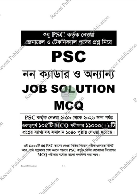সামনে বিসিএস ও প্রাইমারি প্রধান শিক্ষক পরীক্ষা অনুষ্ঠিত হবে , “রিসেন্ট পিএসসি নন ক্যাডার এমসিকিউ জব সলিউশন” এই বইটি শুধু একবার রিভিশন দিয়ে পরীক্ষার হলে গেলে আশা করা যায় সর্বোচ্চ ভালো ফলাফল করা সম্ভব । PSC নন-ক্যাডার ও অন্যান্য JOB SOLUTION MCQ সম্পূর্ণ নতুন জানুয়ারি ২০২৬ এডিসন!