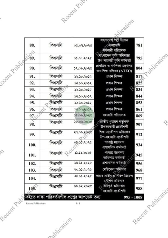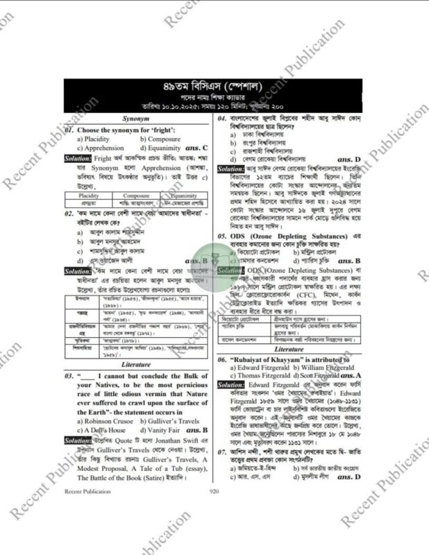 রিসেন্ট পিএসসি নন ক্যাডার এমসিকিউ জব সলিউশন (ক্যাডার, নন ক্যাডার ও অন্যান্য)
