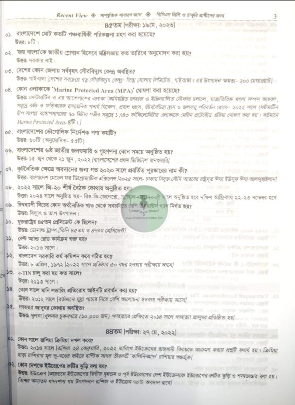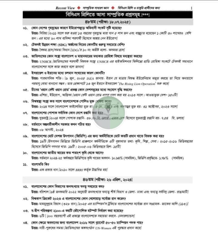 RECENT VIEW সাম্প্রতিক সাধারণ জ্ঞান: ২০২৪-২৫ ৪৭তম প্রিলি, ৪৯তম স্পেশাল বিসিএস ও অন্যান্য চাকুরিপ্রার্থীদের জন্য। বিসিএস সিলেবাস অনুযায়ী সমসাময়িক বাংলাদেশ, আন্তর্জাতিক, পরিবেশ ও প্রযুক্তি।