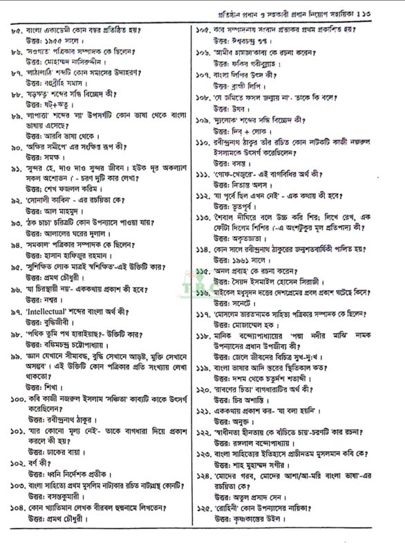 শীকর বাংলাদেশ বিষয়াবলি প্রশ্ন-পাঠ