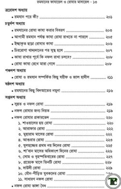 বিষয়বস্তু ও পর্যালোচনা: রমজান মাস ও সিয়াম সাধনা বিষয়ক “রমাযানের ফাযায়েল ও রোযার মাসায়েল” এই বইটি ফিকহ (মাসয়ালা-মাসায়েল) এবং ফাযায়েল (ফজিলত)-এর এক অনবদ্য সংকলন। লেখক অত্যন্ত দালিলিক ও গোছানোভাবে রোযার খুঁটিনাটি বিষয়গুলো তুলে ধরেছেন, যা সাধারণ পাঠক থেকে শুরু করে জ্ঞানপিপাসু সবার জন্য অত্যন্ত উপকারী। সহীহ দলীলের প্রাধান্য: বইটির সবচেয়ে শক্তিশালী দিক হলো এটি কুরআন ও সহীহ হাদীসের ওপর ভিত্তি করে রচিত। লেখক প্রচলিত দুর্বল ও জাল হাদীসগুলো চিহ্নিত করে তা বর্জনের পরামর্শ দিয়েছেন এবং সহীহ হাদীসের আলোকে আমল করার পথ দেখিয়েছেন। আধুনিক জীবনের মাসয়ালা: বইটিতে কেবল প্রথাগত আলোচনাই নয়, বরং আধুনিক চিকিৎসা বিজ্ঞানের নানা জটিল মাসয়ালাও স্থান পেয়েছে। যেমন— ইনজেকশন নেওয়া , ইনহেলার ব্যবহার , ডায়ালাইসিস , এবং বিমানে ভ্রমণকালে ইফতারের সময় নির্ধারণ ইত্যাদি আধুনিক ও সময়োপযোগী বিষয়ের শরয়ী সমাধান দেওয়া হয়েছে। শ্রেণীভিত্তিক আলোচনা: লেখক খুব সুন্দরভাবে বিভিন্ন শ্রেণীর মানুষের জন্য রোযার বিধান আলাদা অধ্যায়ে আলোচনা করেছেন। মুসাফির , অসুস্থ ব্যক্তি, গর্ভবতী ও দুগ্ধদাত্রী মা , এবং বৃদ্ধদের জন্য রোযার হুকুম কী হবে, তা বিস্তারিতভাবে বলা হয়েছে। ভ্রান্তি নিরসন: সমাজে প্রচলিত বিদআত এবং রোজা ও রমজান সম্পর্কে ভুল ধারণাগুলো খণ্ডন করা হয়েছে। বিশেষ করে সাহরী ও ইফতারের সময় নিয়ে বাড়াবাড়ি বা ভুল প্রথাগুলোর ব্যাপারে সতর্ক করা হয়েছে । পূর্ণাঙ্গ গাইডলাইন: রোযার আরকান , তারাবীহর নামায , ই’তিকাফ , শবেকদর , ফিতরা এবং ঈদের বিধান নিয়ে বিস্তারিত আলোচনা করা হয়েছে। কেন পড়বেন? যারা কেবল প্রথাগতভাবে রোজা না রেখে সহীহ সুন্নাহর আলোকে রমজান পালন করতে চান, তাদের জন্য এই বইটি একটি নির্ভরযোগ্য গাইড। রোযার আধ্যাত্মিক উন্নতির পাশাপাশি শরয়ী বিধানগুলো সঠিকভাবে পালনের জন্য এটি একটি অত্যন্ত উপকারী গ্রন্থ। রমজানের প্রস্তুতি ও মাসায়েল জানার জন্য “রমযানের ফাযায়েল ও রোযার মাসায়েল” বইটি আপনার সংগ্রহে রাখার মতো একটি অনন্য কিতাব।