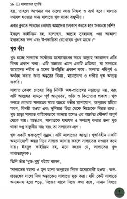 সালাতের সুগন্ধি—নামাজকে কেবল দায়িত্ব নয়, বরং হৃদয়ের আনন্দ ও আত্মার প্রশান্তিতে রূপ দেওয়ার এক অনন্য প্রয়াস। শেষ কবে আপনি আনন্দের সাথে সালাত আদায় করেছেন? সেই সালাত, যা এতই প্রশান্তির ছিল, যে আপনি এক ওয়াক্ত থেকে আরেক ওয়াক্ত পর্যন্ত অপেক্ষার সবর করতে পারেননি! ফজর আদায় করে ভেবেছেন কখন হবে জোহর! জোহরের পর ভেবেছেন কখন আসবে আছর! আছরের পর অস্থির হয়ে ভেবেছেন কখন আসবে মাগরিব আর আপনার প্রিয় রবের সাথে সাক্ষাৎ হবে! শেষ কবে এমন অনুভূতি হয়েছে আপনার? মনে পড়ছে কি? আজকে যে পাঁচ ওয়াক্ত বা এখন পর্যন্ত যে কয়েক ওয়াক্ত সালাত আদায় করার সুযোগ পেয়েছেন, এর ভেতর আপনি কতখানি আত্মবিশ্বাসী যে, আপনার এক ওয়াক্ত অথবা এক রাকাআত সালাত অথবা একটা সিজদা মনের শান্তি নিয়ে এবং খুশু নিয়ে করেছেন, যা আল্লাহর দরবারে পৌঁছাতে পারে? খুঁজে দেখুন তো! এই বইটি তাদের জন্য, যারা পাঁচ ওয়াক্ত সালাত আদায়ে সচেষ্ট। যারা নিজের সালাতকে উন্নত করতে চান। যারা তার রবের সাথে মজবুত কানেকশন তৈরি করতে চান। বইটি তাদের জন্যই। সালাতের সুগন্ধি” বইটি পড়লে জানতে পারবেন কীভাবে আপনার সালাত আনন্দময় হবে। আপনার সালাতের খুশুর গোপন দরজা খুলে যাবে। আপনার সালাত খুশু দিয়ে পরিপূর্ণ থাকবে। ইনশাআল্লাহ।