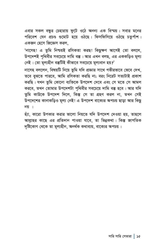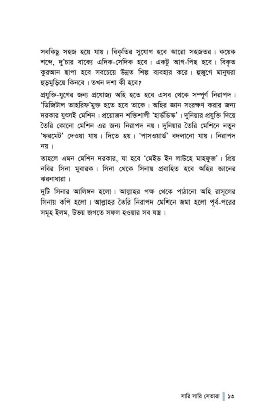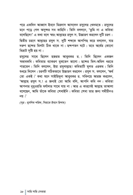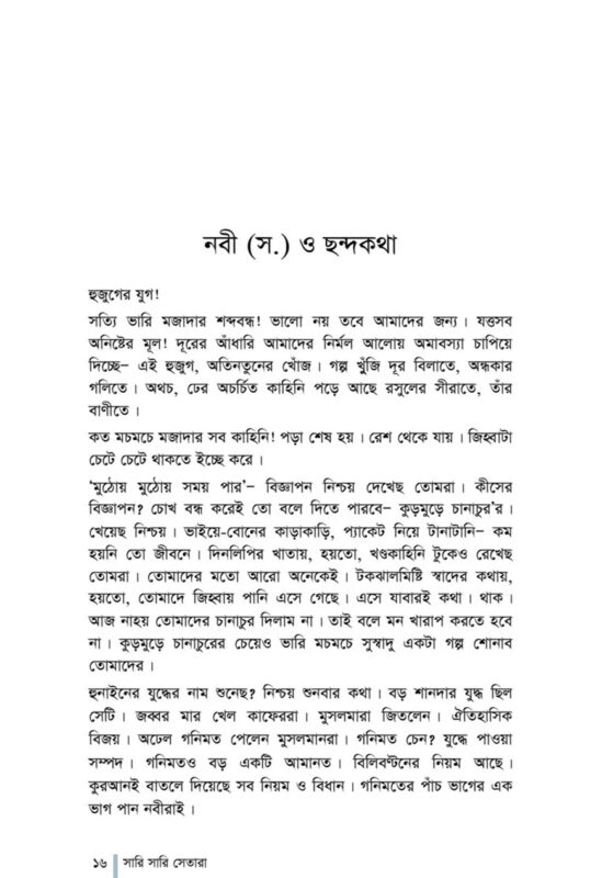 এই পথ-হারানোর ধ্বংস থেকে বাঁচাবার জন্য আধুনিক যুগের কিছু চিন্তাশীল ইসলামি লেখক বেঁচে নিয়েছেন গল্পের ঢঙে ইসলামের কথা বলার আঙ্গিকটা। এরই একটি নমুনা ‘সারি সারি সেতারা’।