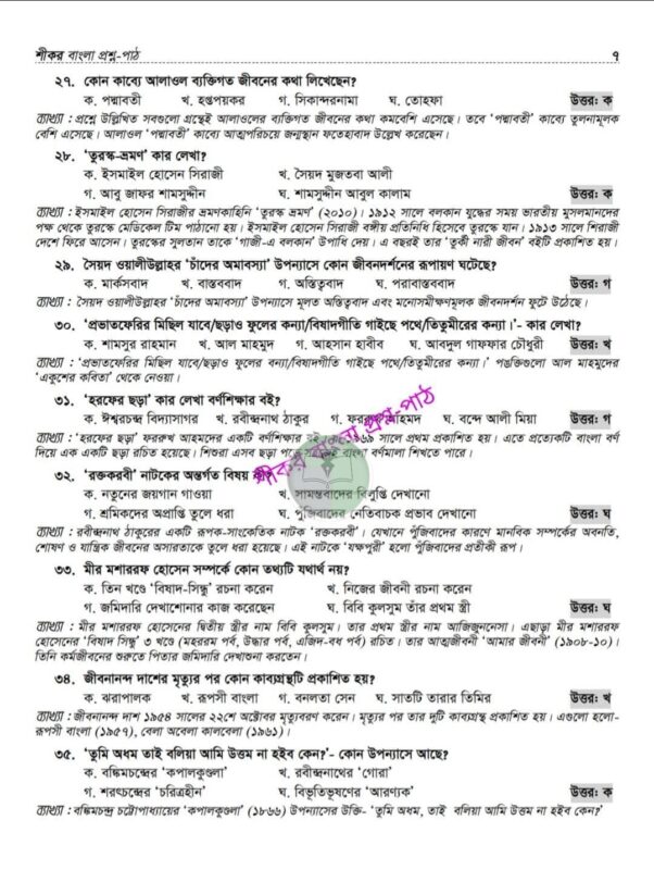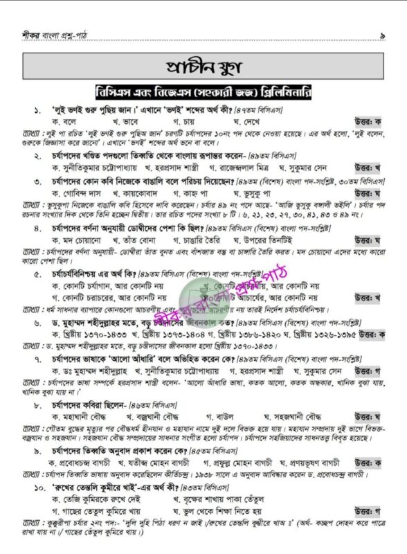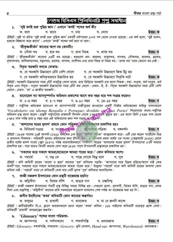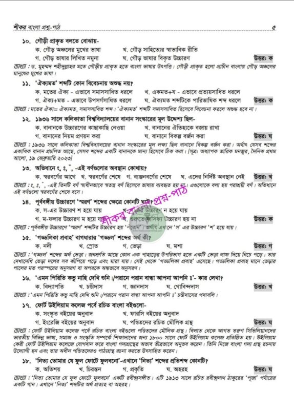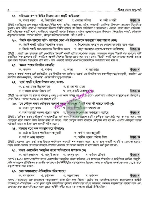 শীকর বাংলা প্রশ্ন-পাঠ (প্রিলি ৫০তম বিসিএস)