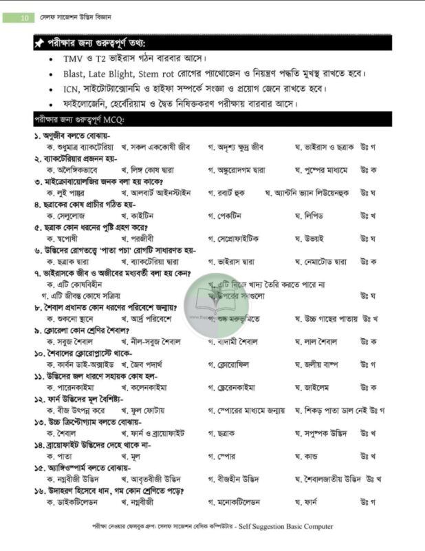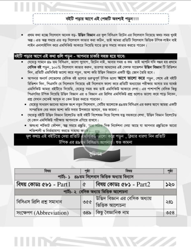 ৪৯তম বিসিএস BCS গাইড সাবজেক্টিভ প্রস্তুতি psc নতুন সিলেবাস অনুযায়ী। ৪৯তম বিসিএস এর সিলেবাস ধরে উদ্ভিদ বিজ্ঞান বই আর একটাও নাই, যে কোনো বই কেনার আগে অবশ্যই অবশ্যই সিলেবাস ভিত্তিক সব অধ্যায় আছে কি না দেখে কিনবেন, শুধুমাত্র বিগত বিভিন্ন প্রশ্ন আর উলটাপালটা টপিক দিয়ে বিভ্রান্ত হবেন না, মনে রাখবেন পিএসসি ১০০ মার্কের টপিক দিয়েছে এবং সেই টপিক কাভার করে আমরা একমাত্র সেলফ সাজেশন বইটী তৈরি করেছি , যা দীর্ঘ পরীশ্রমের ফসল। শুধুমাত্র হাই কোয়ালিটি এবং মানসম্মত এবং স্ট্রং বেসিক কনসেপ্ট বই যারা পড়তে চাচ্ছেন তাদের জন্য সেলফ সাজেশন ৪৯ তম বিসিএস এর জন্য এই বইগুলি অবশ্যই পড়বেন। শতভাগ এগিয়ে থাকবেন, এমন কোয়ালিটি ফুল বই বাজারে একটাও পাবেন না এখন পর্যন্ত ওপেন চ্যালেঞ্জ।