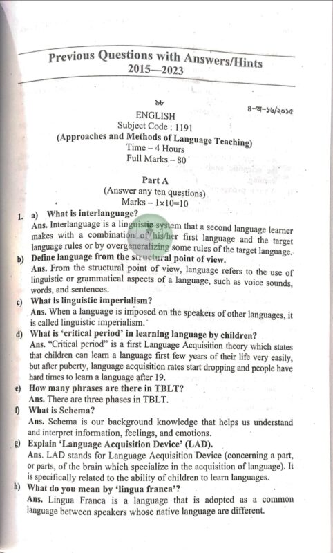 SET Suggestion-2024 & QUESTION BANK