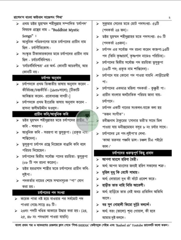 শিখা বাংলা ফাইনাল সাজেশন ও মডেল টেস্ট