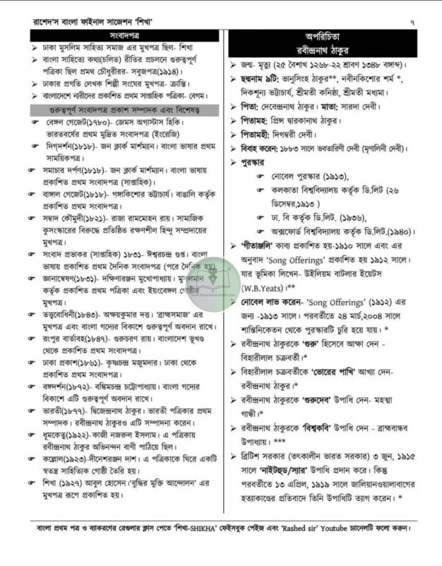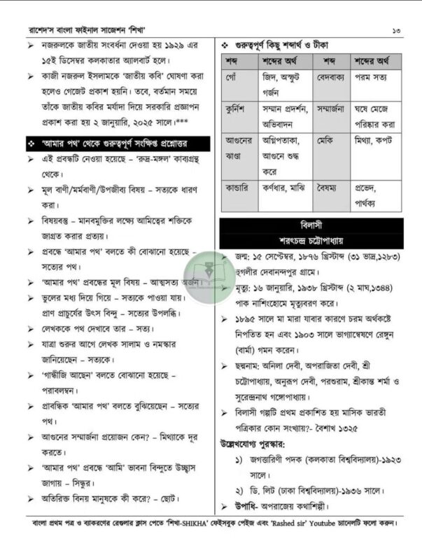 Home বিসিএস এবং চাকুরী শিখা বাংলা ফাইনাল সাজেশন ও মডেল টেস্ট