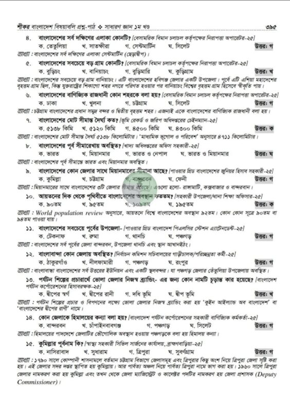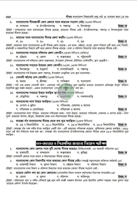 শীকর বাংলাদেশ বিষয়াবলি প্রশ্ন-পাঠ