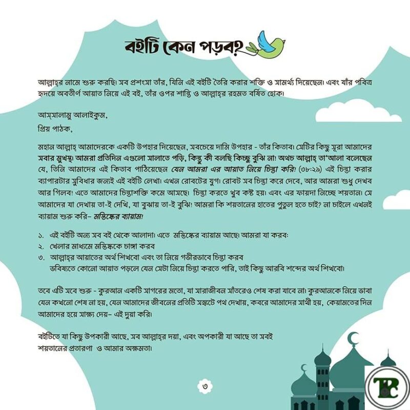 আসন্ন রমাদানে আপনার ছোট্ট সোনামণিকে কুরআনের গভীর সৌন্দর্যের সাথে পরিচয় করিয়ে দিন, “শিশু-কিশোরদের কুরআনের তাফসির” বইটির মাধ্যমে। শিশুদের মনস্তত্ত্ব বিবেচনায় তৈরি এই বইটি ঈমান, জ্ঞান ও চরিত্র গঠনের এক অনন্য সমন্বয়। কীভাবে একটি শিশু এই বই থেকে উপকৃত হবে ⍰ ➺ প্রাণবন্ত ও সচিত্র উপস্থাপনাঃ রঙিন, আকর্ষণীয় ও অর্থবহ ডিজাইন শিশুদের মনোযোগ ধরে রাখবে এবং শেখাকে করে তুলবে আনন্দময়। ➺ সহজ ও বয়সোপযোগী ভাষাঃ কুরআনের ১১টি সূরার তাফসির অত্যন্ত সাবলীল ভাষায় উপস্থাপিত হয়েছে; যাতে শিশুরা আল্লাহর বাণীর মূল বার্তা সহজেই হৃদয়ে ধারণ করতে পারে। ➺ ভাবনা ও আলোচনাঃ প্রতিটি সূরার শেষে আছে সহজ কিছু প্রশ্ন, যা শিশুদের কুরআনের বিষয় নিয়ে ভাবতে ও পরিবারে আলোচনা করতে সাহায্য করবে। ➺ সৃজনশীল কার্যক্রম সংযুক্ত