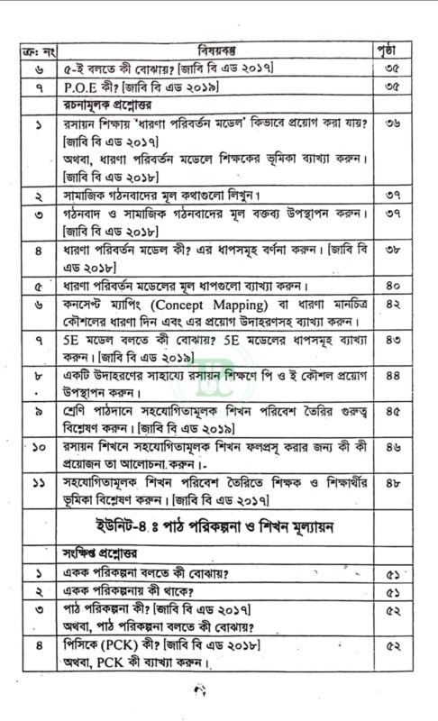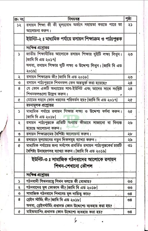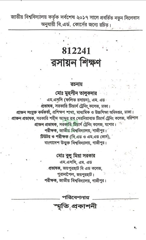 স্মৃতি বিএড রসায়ন শিক্ষণ (কোড: ৮১২২৪১)