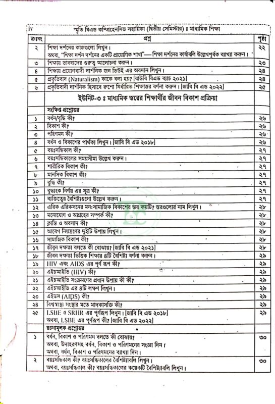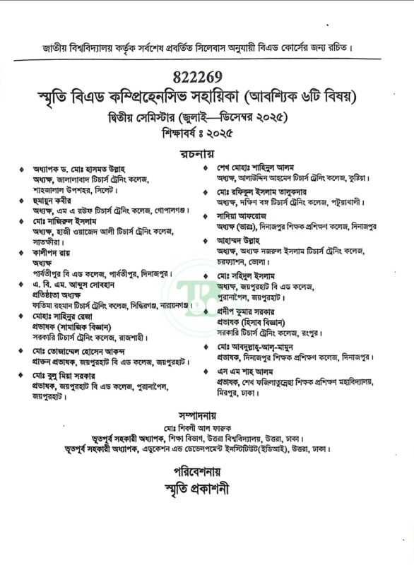 স্মৃতি বিএড কম্প্রিহেনসিভ সহায়িকা দ্বিতীয় সেমিস্টার (কোড: ৮২২২৬৯)