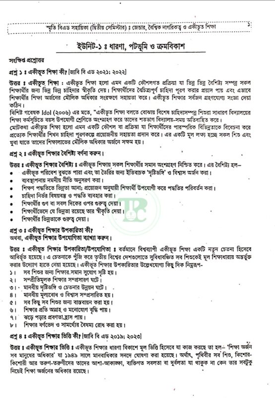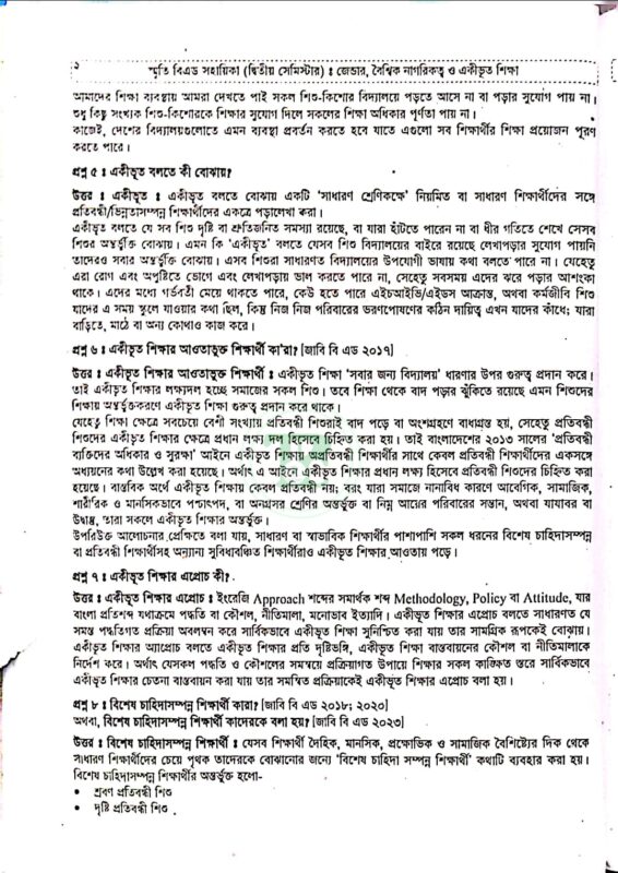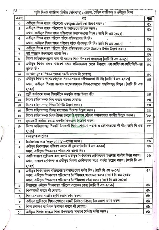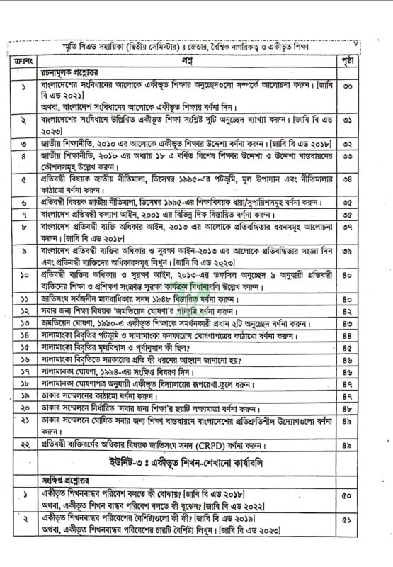 স্মৃতি বিএড সহায়িকা (আবশ্যিক বিষয়সমূহ) দ্বিতীয় সেমিস্টার (কোড: ৮২২২৬১-৩ )