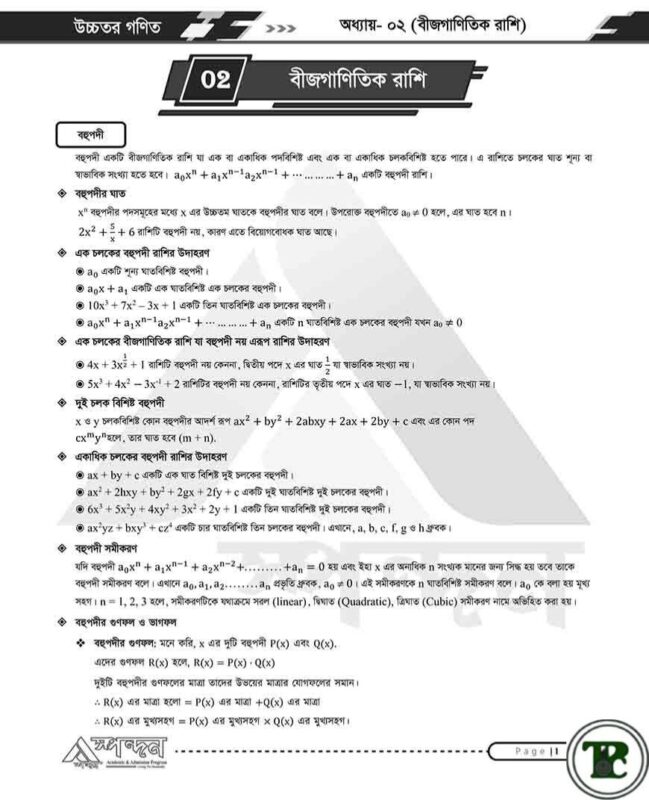 | Category | : | নবম ও দশম (বিজ্ঞান): উচ্চতর গণিত পাঠ্য সহায়িকা |