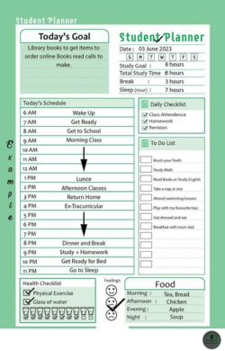 একটি স্টুডেন্ট প্ল্যানার হলো একটি ওয়ার্কবুক। যা আপনাকে অণুপ্রাণিত এবং টার্গেট থাকতে সাহায্য করবে। আমরা জানি শিক্ষার্থীদের যখন হোম ওয়ার্ক থাকে, তারা প্রায়ই এটি লিখতে ভুলে যায় এবং শেষ অ্যাসাইনমেন্টগুলি হারিয়ে ফেলে। স্টুডেন্ট প্ল্যানারটি একজন শিক্ষার্থীর পরিকল্পনাকারী হিসেবে সাহায্য করবে ইনশা-আল্লাহ। এ প্ল্যানারটি আপনাকে লক্ষ্য নির্ধারণ করতে, আপনার সময় পরিচালনা করতে এবং কাজে থাকতে সাহায্য করবে। স্টুডেন্ট প্ল্যানার আপনাকে প্রতিটি ক্লাসের জন্য কতটা কাজের প্রয়োজন তার একটা ধারণা দিবে; যাতে আপনি সে অনুযায়ী পরিকল্পনা করতে পারেন। আপনি নিজের জন্য কী করা দরকার তা লিখে রাখার সময় দেখবেন; এতে নিজেকে নিয়ন্ত্রণ করা কতটা সহজ হয়ে যাচ্ছে। যা দেখে আপনি অবাক হবেন এবং এটি করাও আপনার কাছে অনেক দূর্দান্ত লাগবে। ডেইলি রুটিন maintain এবং পড়াশুনার পারফেক্ট প্ল্যানিং করার জন্য, টার্গেট লিখে রাখা এবং কতটা এচিভ করলেন সেটা আগে থেকে প্ল্যানিং করে রাখার কারনে পিছিয়ে পড়ার সম্ভাবনা ও কমে যাবে।