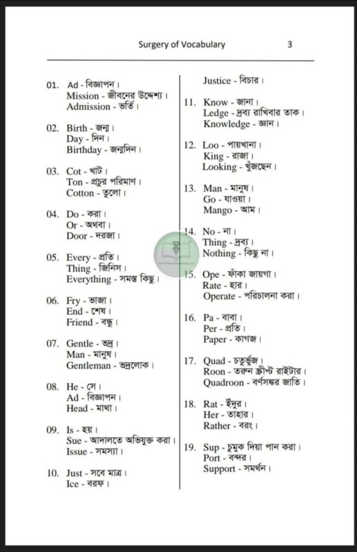 ২. প্রায় ২৪,৫০০+ শব্দার্থ নিয়ে সার্জারি অফ ভোকাবুলারি – 3 in 1 বইটি তৈরি করা হয়েছে।