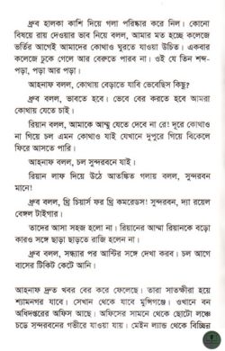ফিকে জোছনার রাত। আহনাফ উঠে দাঁড়াল। ধ্রুব আর রিয়ানও উঠে দাঁড়িয়েছে। কোনো শব্দ না করে ধীর পায়ে তারা তিনজন তাঁবুর পেছন দিকে এগিয়ে গেল। দেখল একটা ছায়ামূর্তি তাঁবুর পেছন থেকে দ্রুত হেঁটে বনের গভীরে চলে যাচ্ছে। ছায়ামূর্তি বনের ভেতর দিয়ে হেঁটে যাচ্ছে দ্বীপচর খালের দিকে। শ্রেয়া তার তাঁবু থেকে একই ঘটনা দেখেছে। ফগনা বন থেকে বেরিয়ে এসেছে। তাকে দেখে বুন্টা বলল, ‘নৌকা থেকে অস্ত্র নিয়ে আয়। পাহারায় থাকবি। তাদের বাঁধন খুলে দেওয়া হচ্ছে। যদি কেউ পালানোর চেষ্টা করে গুলি করে মেরে ফেলবি। জোয়ারের সময় লাশ ভাসিয়ে দিবি। নদী থেকে লাশ চলে যাবে সমুদ্রে। কুমিরে খাবে নাহয় হাঙরে খাবে।’