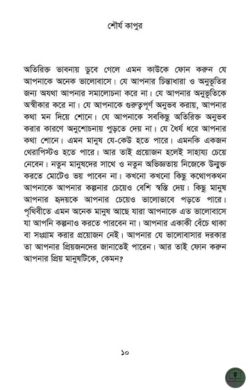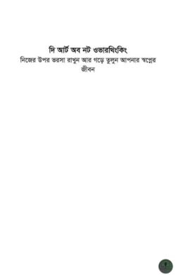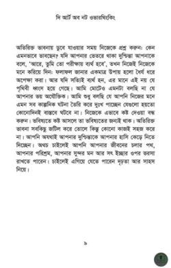 “দ্য আর্ট অব নট ওভারথিংকিং” বইটি মূলত তাদের জন্য, যারা অতিরিক্ত চিন্তা, আত্মসমালোচনা বা মানসিক অস্থিরতার মধ্যে ভুগছেন। যখন তুমি তোমার সম্ভাবনা, উদ্দেশ্য, ভালো কাজ এবং কঠোর পরিশ্রমের উপর আস্থা রাখতে শুরু করো, তখন তুমি অবশেষে খারাপটা আশা করা বন্ধ করে দাও।তুমি ভাবতে থাকো যে যদি কিছুই কাজ না করে তাহলে কী হবে কারণ তুমি জানো যে নতুন করে নতুন করে গড়ে তোলার জন্য যা যা দরকার তা তোমার আছে।যখন তোমার আত্মসম্মান বেশি থাকে এবং তোমার আত্মবিশ্বাস বেশি থাকে তখন অতিরিক্ত চিন্তাভাবনা নিয়ন্ত্রণ করা হয়। যখন তুমি নেতিবাচক আত্ম-কথা বলার চেয়ে নিজেকে বেশি বিশ্বাস করতে শুরু করো, তখন তুমি নিজের সেই অংশগুলিকে সুস্থ করে তুলো যেগুলোর জন্য তুমি জানতেও না যে আরোগ্যের প্রয়োজন।এটি সাহসের একটি কাজ – নেতিবাচক চিন্তাভাবনাগুলিকে ত্যাগ করে নিজের শান্তি বেছে নেওয়া যা তোমাকে নিজের সাথে যুদ্ধে লিপ্ত রাখতে দৃঢ়প্রতিজ্ঞ।এই “দ্য আর্ট অব নট ওভারথিংকিং” বইটি তাদের জন্য যারা অতিরিক্ত চিন্তা করে, অতিরিক্ত অনুভব করে, অতিরিক্ত ভালোবাসে এবং মানুষের উপর অতিরিক্ত বিনিয়োগ করে। এটি তাদের জন্য যারা হারিয়ে যাওয়া, বিভ্রান্ত এবং ভুল বোঝাবুঝি বোধ করে।যদি তুমি চাও তাহলে এই বইটি কিনো:* নিজের সম্পর্কে ভালো বোধ করো।* অতিরিক্ত চিন্তাভাবনা বন্ধ করো।* নিজের সাথে একটি সুস্থ সম্পর্ক গড়ে তুলো।* আপনার সম্ভাবনা এবং স্বপ্নের উপর বিশ্বাস করতে শিখো।* সবকিছু ভুল হলেও আশাবাদী থাকুন।এই বইটি আপনাকে ভালোবাসা, শোনা এবং বোঝার অনুভূতি দেবে।