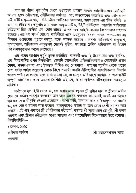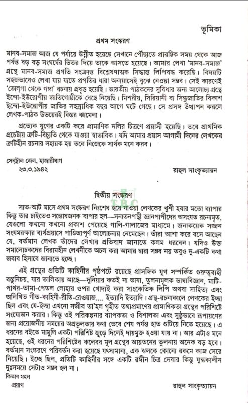 রাহুল সাংকৃত্যায়নের “ভোল্গা থেকে গঙ্গা” এবং ‘কনৈলা কী কথা’-র বঙ্গানুবাদ একত্রে প্রকাশ করার সিদ্ধান্ত নিয়েছেন এবং এই ব্যাপারে রাহুলজায়া ড. কমলা সাংকৃত্যায়নের পরামর্শ ও অনুমতি নিয়েই তাঁরা এ কাজে নেমেছেন। “ভোল্গা থেকে গঙ্গা” এই গ্রন্থের প্রতিটি কাহিনীর পৃষ্ঠপটে রয়েছে প্রাসঙ্গিক যুগ সম্পর্কিত গুরুত্ববাহী বস্তুনিচয়, যার তালিকায় আছে-দুনিয়ার কতই না ভাষা, তুলনামূলক ভাষাবিজ্ঞান, মাটি-পাথর-তামা-পেতল লোহার ওপর খোদাই করা সাংকেতিক লিপি অথবা সাহিত্য এবং অলিখিত গীত-কাহিনী-রীতি-রেওয়াজ…. ইত্যাদি ইত্যাদি। গ্রন্থ-রচনাকালে লেখকের ইচ্ছা ছিল এবং যে-ইচ্ছা এখনো সজীব তা’হল গৃহীত তথ্যপ্রমাণের প্রামাণিকতা গ্রন্থের পরিশিষ্টে সংযোজন করার। কিন্তু ওই পরিকল্পনার ব্যাপকতা ও বিশালতা এবং সুষ্ঠুভাবে রূপায়ণের জন্য প্রয়োজনীয় সময়ের অপ্রতুলতার কথা ভেবে শেষ পর্যন্ত হাত গুটিয়ে নিতে হয়েছে। এ ধরনের বইতে মামুলি একটা পরিশিষ্ট জুড়ে দিলেই দায়মুক্ত হওয়া যায় না। আর এটাও মনে হয়েছে, ওই ধরনের পরিশিষ্টের কলেবর মূল গ্রন্থের আয়তনের তুলনায় অনেক বড় হবে। বর্তমান সংস্করণে পরিবর্তন করা হয়েছে যৎসামান্য, এক ঝলকে কোনো রকমে কাজ সেরে নিয়েছি। ইচ্ছে ছিল, প্রতিটি কাহিনীর সঙ্গে একটি রঙ্গীন চিত্র দেবার কিন্তু যুদ্ধকালীন দুঃসময়ে সেটাও সম্ভব হল না।